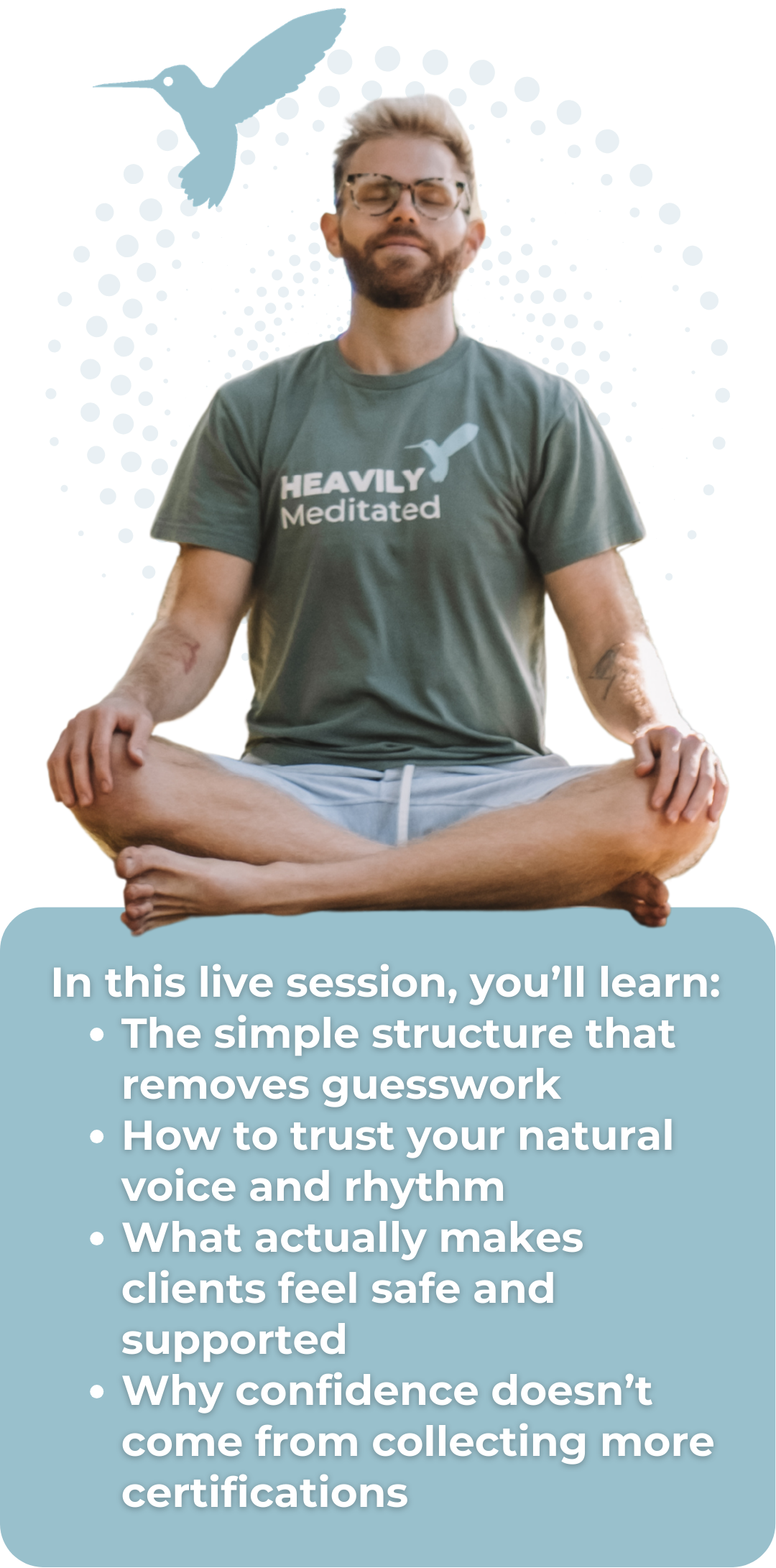 Most yoga teacher trainings, breathwork certifications, and therapy programs never actually teach you how to guide meditation with structure and presence.